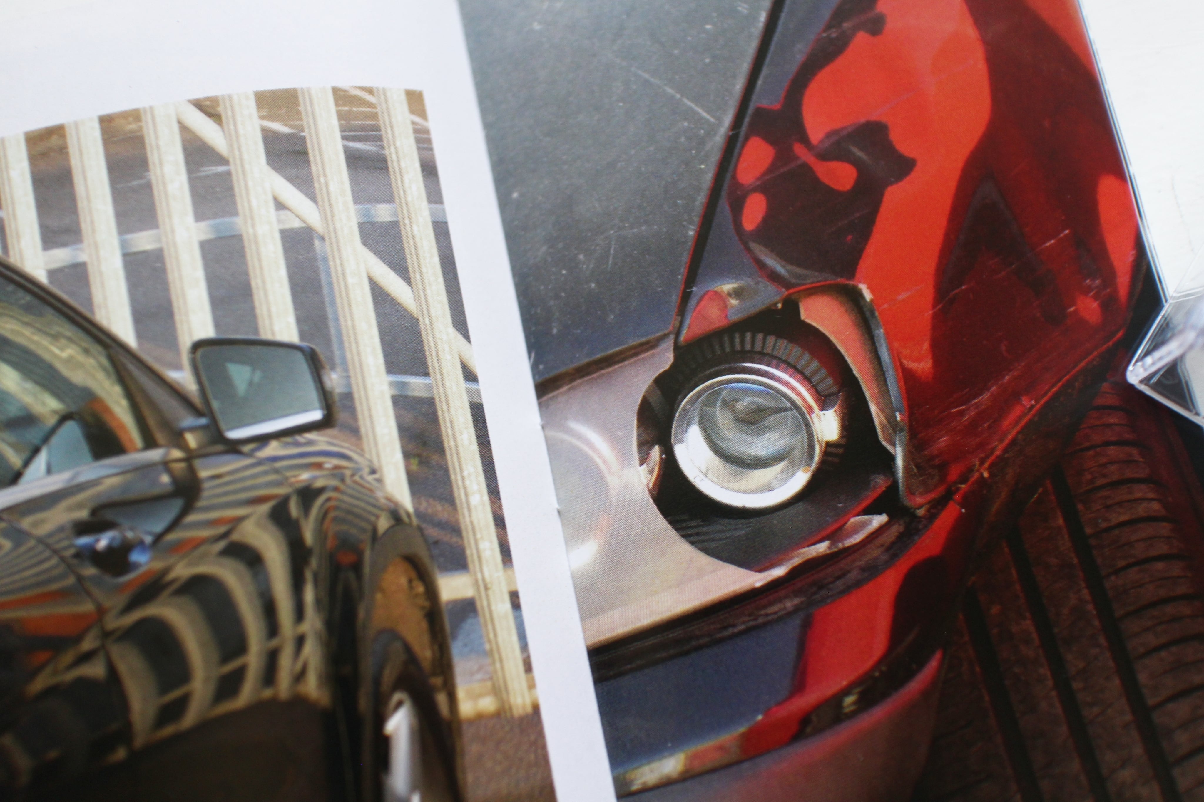 クルマのボディが持つ流体力学的な滑らかで美しい曲面と、それに反射する歪んだ世界。